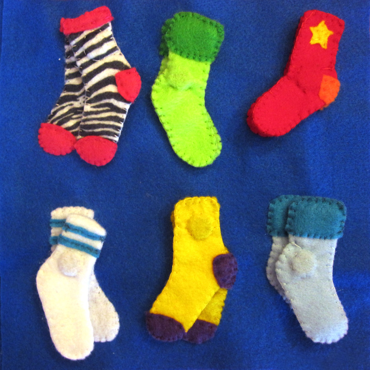 Another quiet book page is ready for Jax’s book! When I was doing the laundry this week, I managed to pull 6 of Jax’s tiny socks out of the dryer before I found one with a match. That inspired this page!