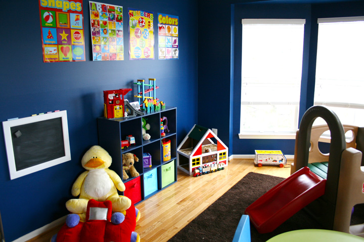And here is a bonus photo to show a little update we made to the playroom. The dollar store sells teaching supplies, and we came across these great educational posters sold in 2 packs. I love the colors and Jax loves pointing to everything he knows on them.