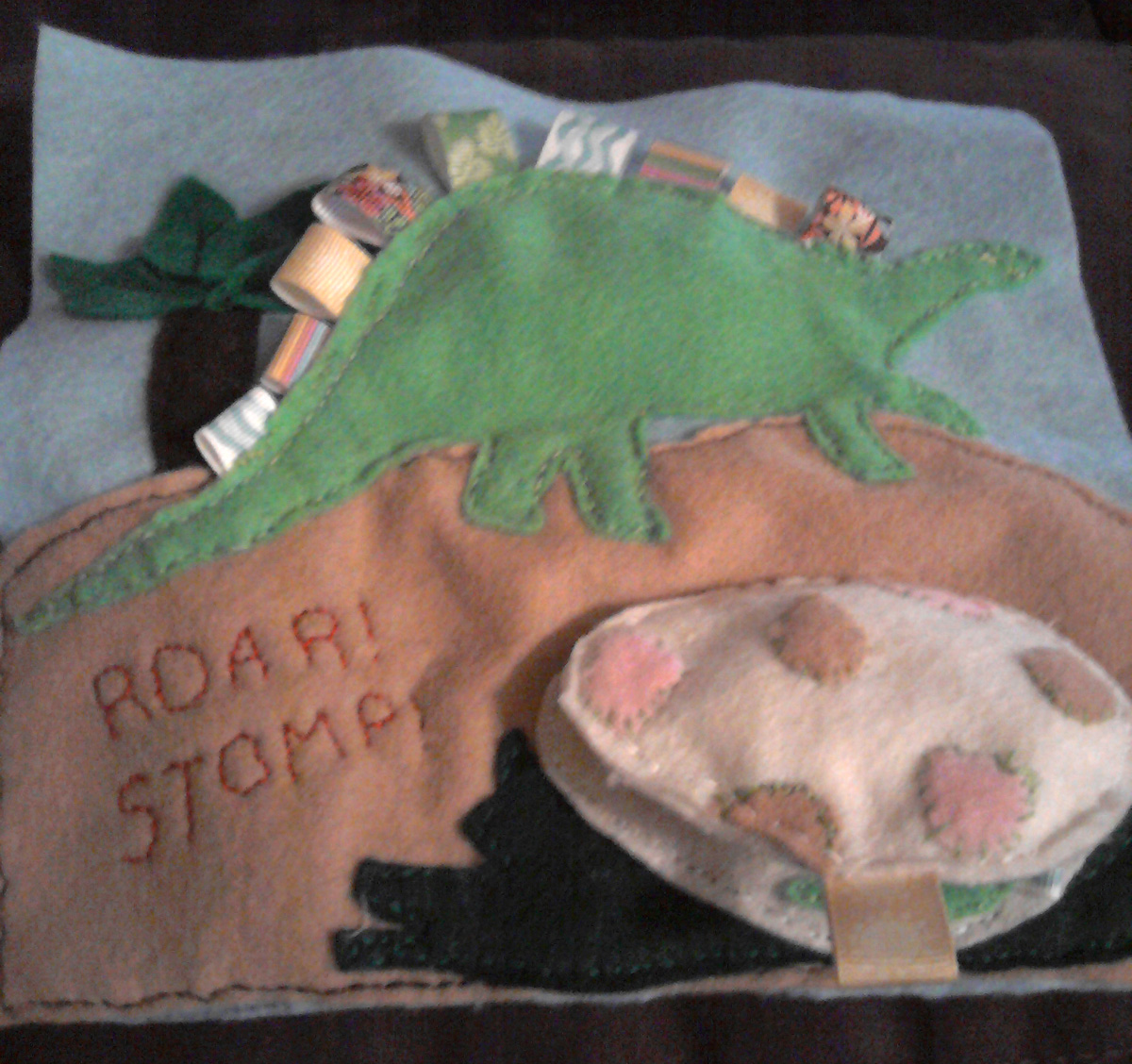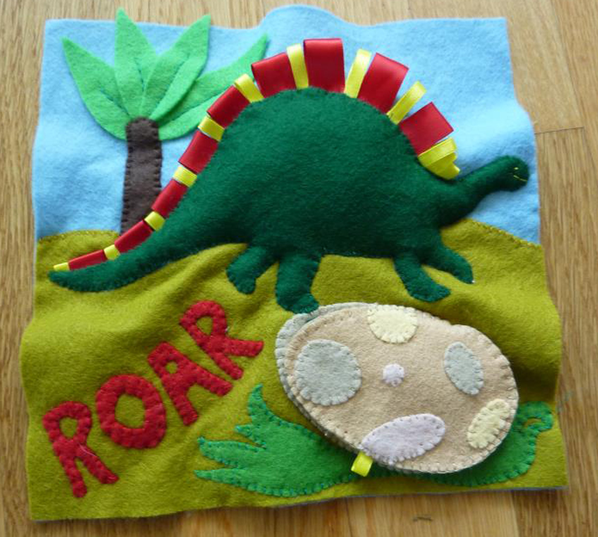 This first gallery is for the Dinosaur quiet book page. The ribbons on the dinosaurs’ backs make it a very easy page to customize. I’m amazed at how different it looks just with different colored ribbons! Some of you took it even further and made a 2-page spread with volcanoes and additional dinosaurs. They are all great!