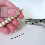 Make the end loop by first bending the wire at a right angle to the bead bar, then using the round nose pliers to create a loop. Close the bottom of the loop by squeezing it with the pliers, tucking the end into the hole of the top bead. If your bead holes are big, you’ll need bigger loops.