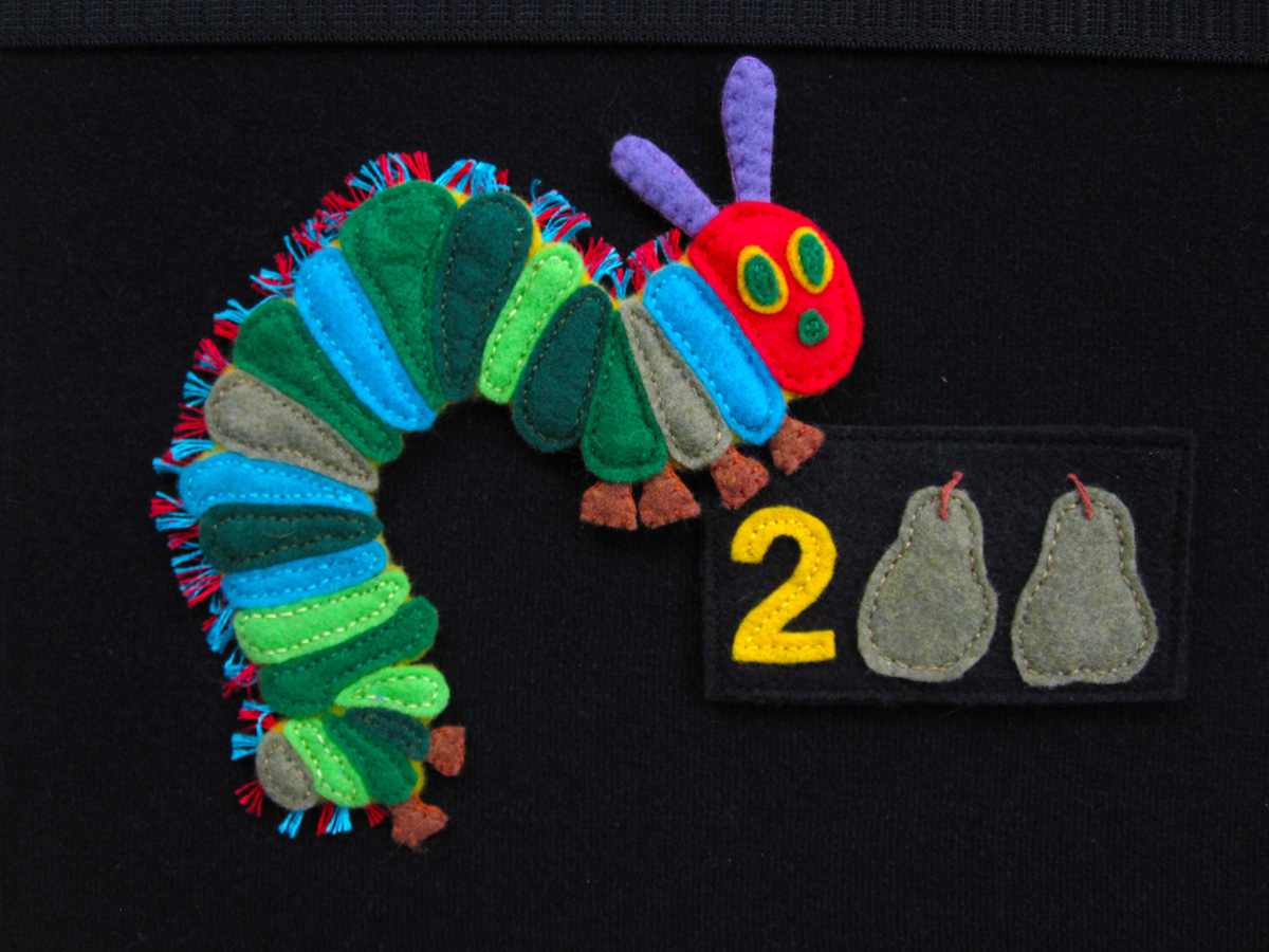 I’ve been quiet here on the blog while working on a large sewing project, though I’ve been posting regular updates on the Facebook page. I took a break from quiet book sewing to make a birthday present for one of Jax’s friends who was turning 2 years old. His friend adores all of Eric Carle’s books and was planning a Very Hungry Caterpillar