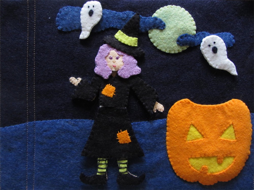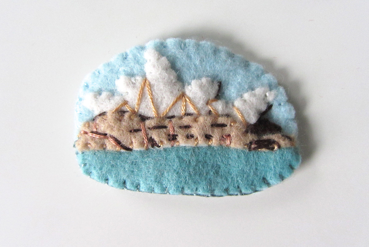 A note about the three dot rows: I carried the white yarn along as I went so I could switch colors, stitching overtop of it with the yellow/orange until I needed it. To switch colors, I’d do all but the last yarn-over of the stitch before the color change, then switch threads to the next stitch’s color and do the final yarn-over. (In the linked video, she doesn’t enclose the carried thread in her stitches as I did.)