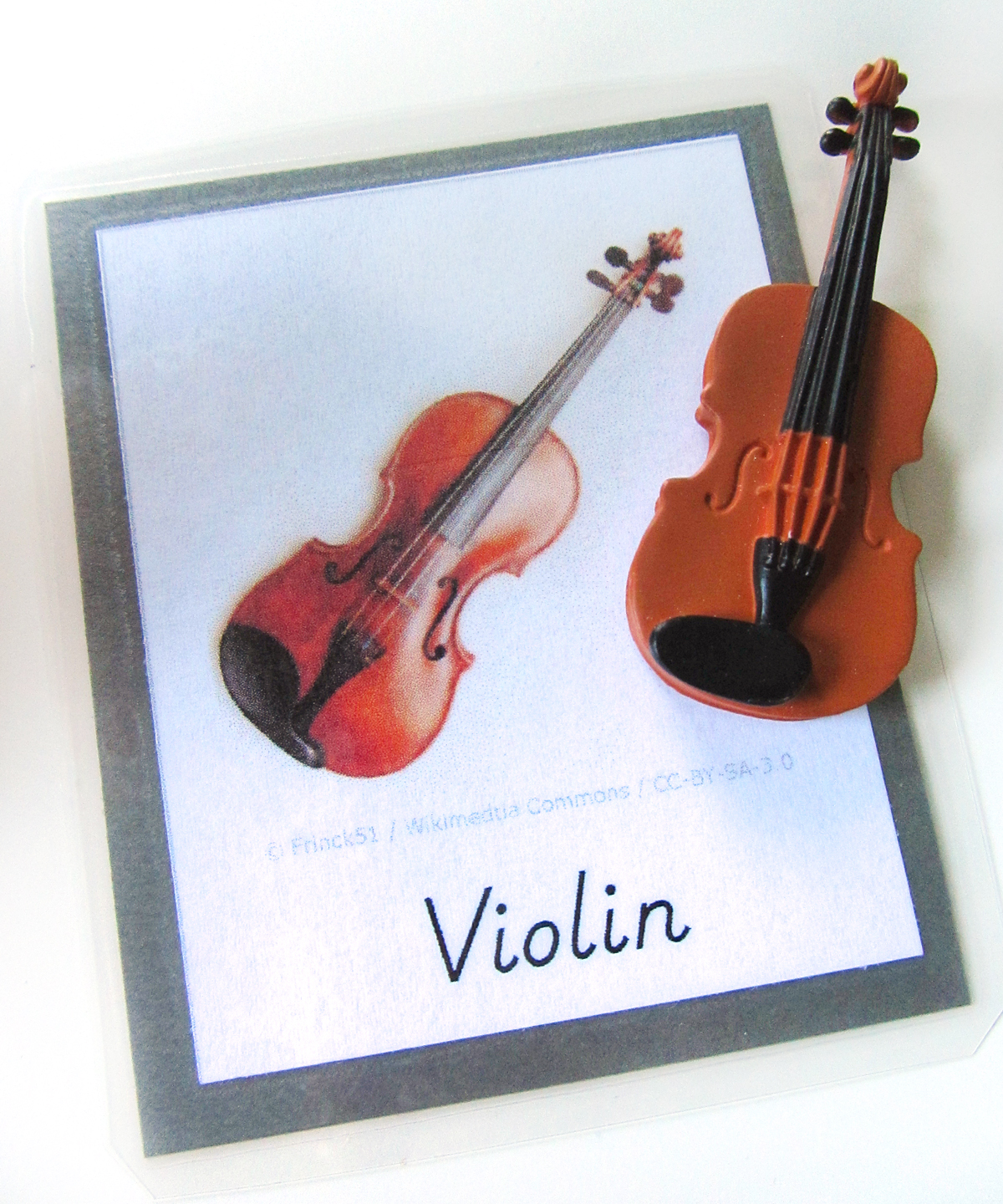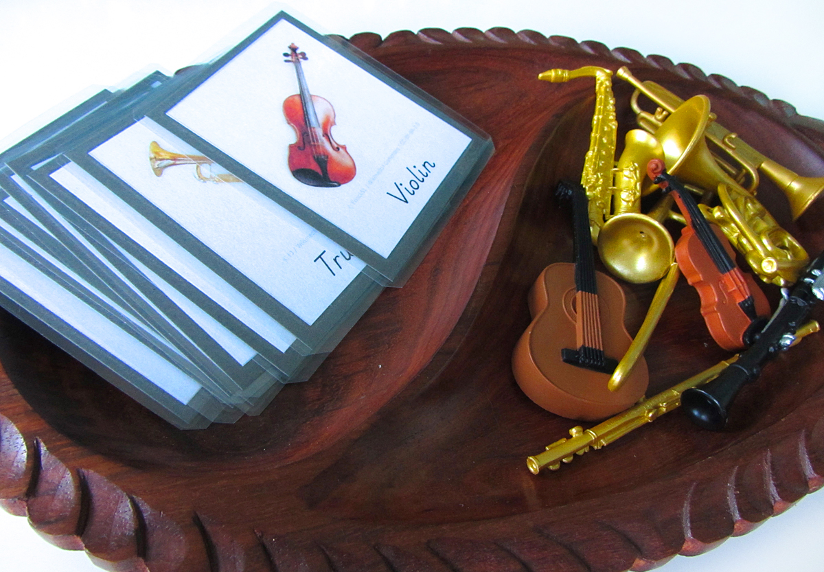 Once you have your cards printed and cut, use a dab of glue to attach them to card stock. Trim the card stock to have about a 3mm border. I like to match the color of the card stock to the theme of the cards. For my continent cards, I used the color that represents the continent in Montessori. Then I’d make cards for each continent’s animals and use that same continent color for the card stock. Sometimes my choice is arbitrary. I chose gray for music. Whenever I make a new set of cards for music studies, I mount them on gray card stock.