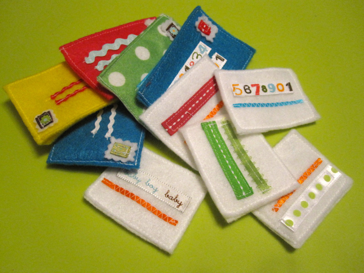 The mail is a blast to make! Get out your ribbon and ric-rac stash and have some fun! I used my sewing machine for them and had to rush. Please excuse the shoddy stitching in my example – I was actually nursing at the same time!